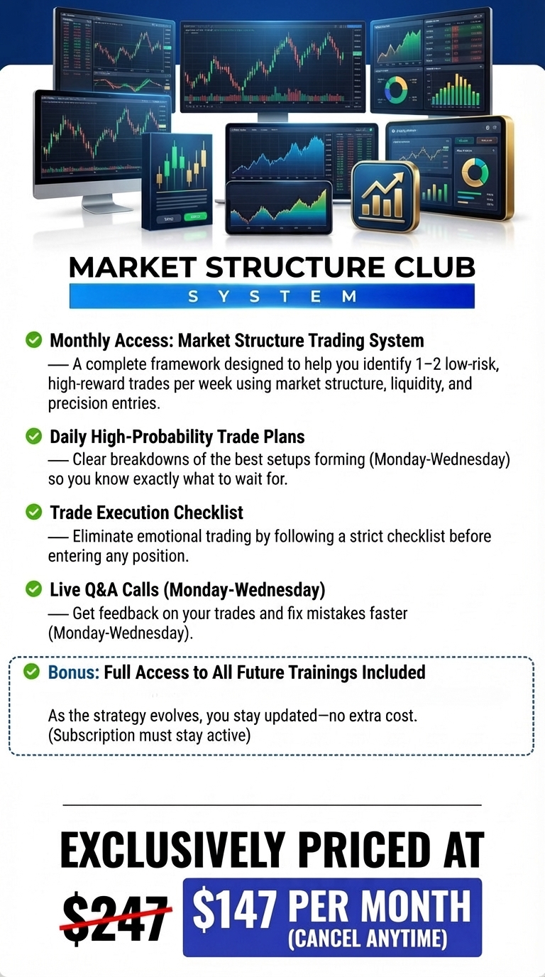 Yes. As long as your subscription stays active, you’ll receive full access to all future trainings related to Market Structure Trading at no extra cost. (excluding in-person events or VIP coaching)